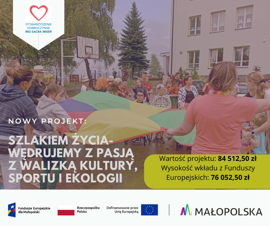 Stowarzyszenie Dobroczynne „Res Sacra Miser” uzyskało dotację z Unii Europejskiej na realizację projektu wspierającego dzieci i młodzież z niepełnosprawnością z powiatów olkuskiego i krakowskiego.