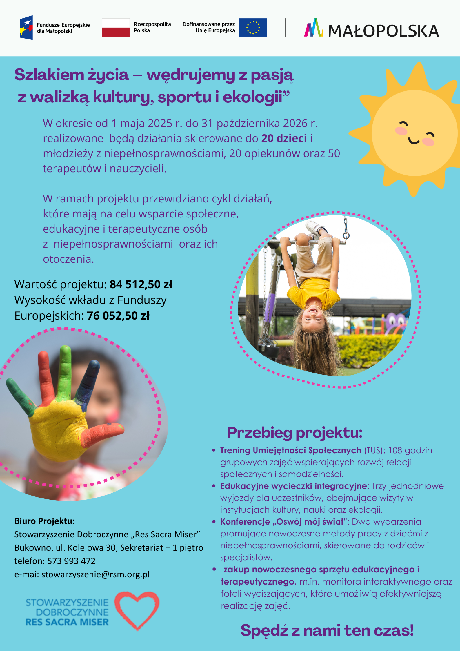 Stowarzyszenie Dobroczynne „Res Sacra Miser” uzyskało dotację z Unii Europejskiej na realizację projektu wspierającego dzieci i młodzież z niepełnosprawnością z powiatów olkuskiego i krakowskiego.